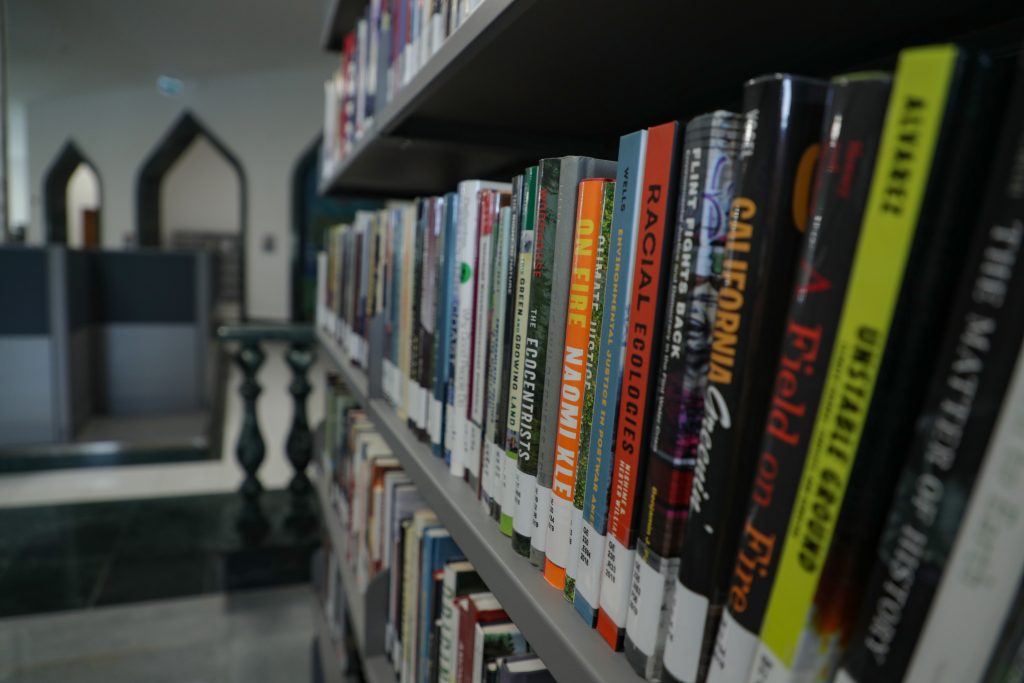 تتبع المكتبة سياسة الرفوف المفتوحة وتستخدم نظام تصنيف مكتبة الكونغرس لتنظيم المواد الكتابية على الرفوف. يمكن لأعضاء هيئة التدريس والطلاب والموظفين والزوار البحث عن الكتب باستخدام فهرس المكتبة الإلكتروني على موقع المكتبة. تتوفر أجهزة كمبيوتر للاستخدام العام داخل المكتبة. موظفو المكتبة متاحون لتقديم المساعدة عند الحاجة.