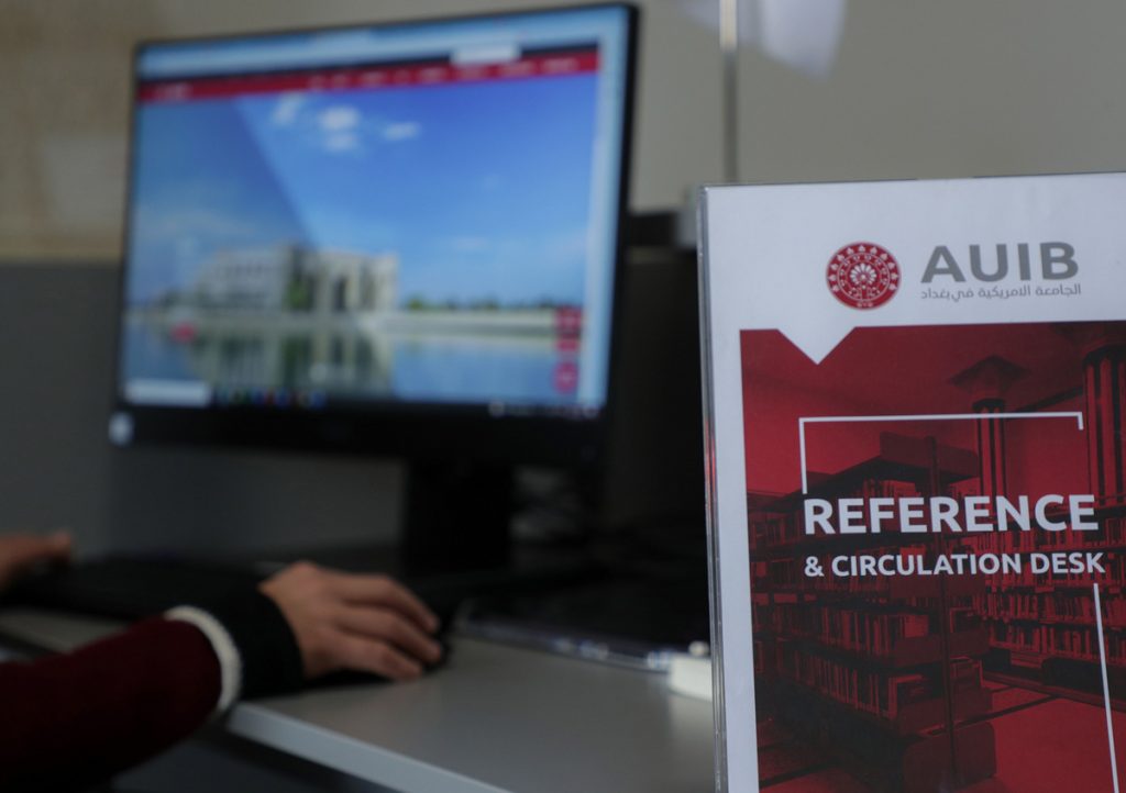 يتوفر التدريب على محو الأمية المعلوماتية والبحث في قواعد البيانات وطرق البحث لمقررات الجامعة الامريكية في بغداد. أرسل بريدًا إلكترونيًا إلى library@auib.edu.iq للحصول على مزيد من المعلومات أو لجدولة جلسة. تحتوي المكتبة على قاعة دراسية تتسع لما يصل إلى 25 طالبًا. يمكن لموظفي المكتبة أيضًا إجراء جلسة في القاعات الدراسية.